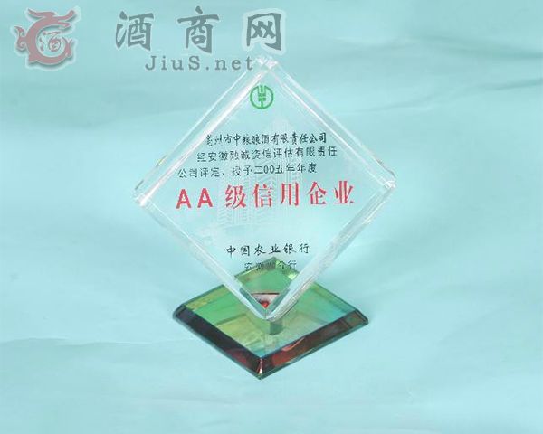 2005年度被評為“AA級信用企業(yè)”|亳州市中糧釀酒有限責(zé)任公司-酒商網(wǎng)【JiuS.net】  設(shè)為首頁 | 加入收藏 | 聯(lián)系我們